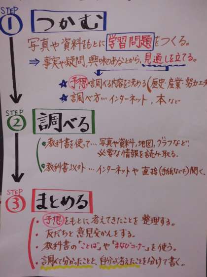 社会科では「低い土地のくらし」という学習をしています。3つの川に囲まれた岐阜県海津市は堤防に囲まれ,そこに住む人々のくらしや産業には,どのようなくふうがあるのだろうかということを【つかみ】・【調べ】・【まとめ】ました。