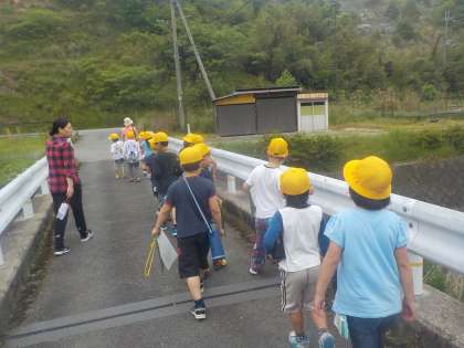 学校の近くのまち探検に行きました。「サンダイコーがあるよ。」「銀行もあるよ。」「自転車屋さんも」「タンポポがさいているよ。」「ザリガニやカニも見つけたよ。」と,いろいろな発見をすることができました。来週,2回目の探検に出かける予定です。