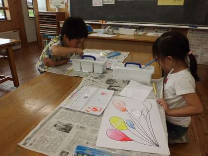 初めて自分の絵の具を使いました。筆の洗い方や,パレットの使い方,絵の具の出し方などドキドキ,ワクワクしながら,色作りを楽しむことができました。