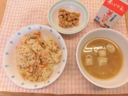 ゆでた大豆を片栗粉をつけて揚げ,さとう・しょうゆ・みりん・料理酒を煮詰めた調味液とごまとでからめてつくりました。