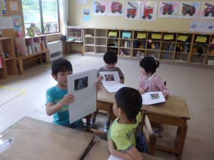 下書きしたものをカードにていねいに清書しました。そのあと友だちとクイズを出し合い楽しく過ごしました。