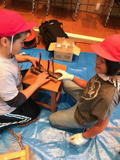 自然のものを使ったクラフトに挑戦です。それぞれ工夫して作成中です。