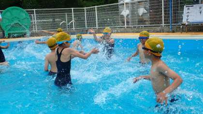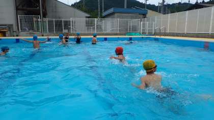 プールのきまりや水泳の心得を中心に,いし拾いをするなど楽しんで,活動しました。また,自分の泳力を確かめることで,次のめあてを確認することができました。