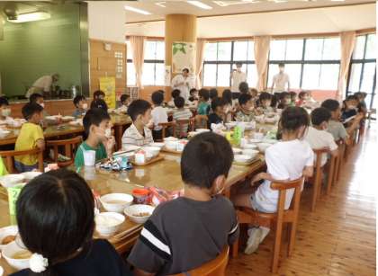 3・4校時には,1・2年生で水あそびをしました。水中じゃんけんやけのびなど,思う存分,水あそびを楽しむことができました。この後,給食も二小・三小のお友達と一緒に,お話をしながら楽しく食べることができました。