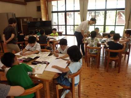 5校時の国語では,グループ毎に,「まいごのお知らせ」のアナウンスの文をみんなで考えました。