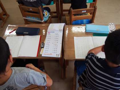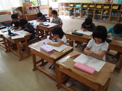 2学期から,1年生も自主学習ノートをはじめました。今回は,「10までのたしざん」をテーマにノートの書き方を確かめました。今週からは,宿題の1つとして取り組みます。各学年の自主学習ノートをみて,いいノートを作りたい!と意気込んでいました。