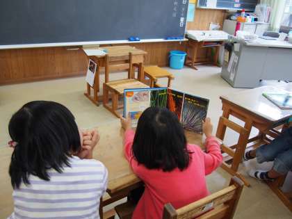 国語で「うみのかくれんぼ」の学習が始まりました。海の生き物の様子を絵本で確かめました。「こんなところにいる!」「これしってるよ!」と,とても楽しそうに本を読んでいました。