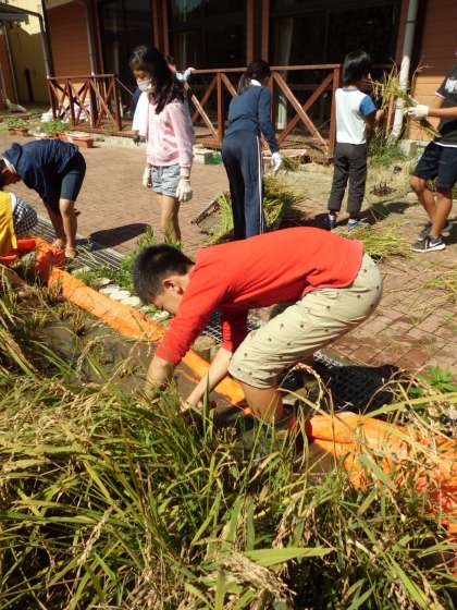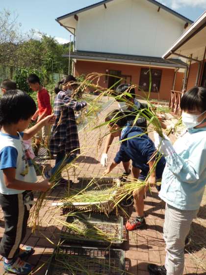 1日(月)に春に植えていた稲を刈りました。刈るグループと食べられる稲と食べられない稲を仕分けるグループに分かれて作業をしました。天候にも恵まれて無事作業を終えることができました。乾燥させておいしいお米を食べられる日が楽しみです。
