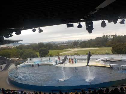 10月5日に水族館見学にいってきました。京北の3小学校合同で行ったので他の小学校の友達とも関わりながら,グループで見学をしました。迫力のあるイルカショーを見た後は,お弁当を食べました。
