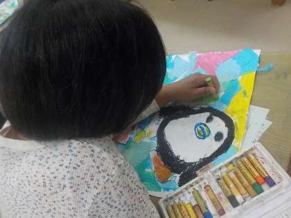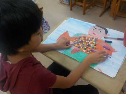 図画工作科の時間にお話の絵に取り組みました。物語の世界をうまく絵で表すことができました。