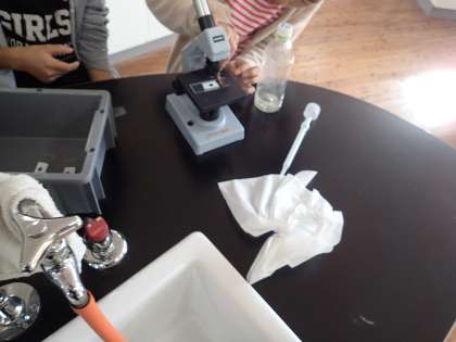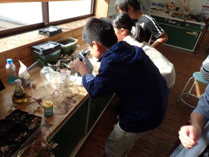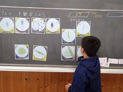理科の時間,プランクトンの観察をしました。「先生,これケンミジンコや。」「頭にひげみたいなものがついている。」「ミドリムシを見つけた。」「ゾウリムシは動きが早いな。」など,どんどん新しい発見をすることができていました。