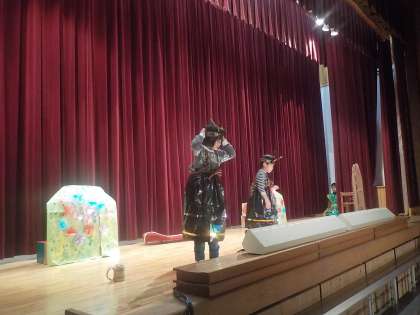 学習発表会にむけて,舞台での練習も始まりました。体育館の広さに合った声の大きさを意識して練習しています。