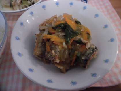 下味をつけたさんまに,野菜たっぷりのあんをかけて食べます。