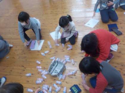 2年生と一緒に数を使ったゲームをしました。的入れやおはじき数え,カップ積み,それぞれのゲームに楽しみながら集中して取り組むことができました。