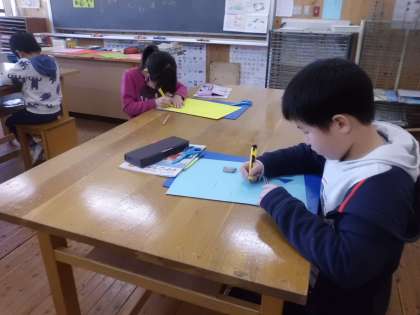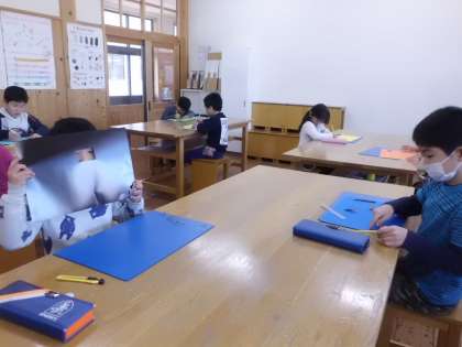 初めて使うカッターナイフに緊張しながらも,いろいろな形の「まど」を作ることができました。来週は,「まどからひらくと何がみえるかな?」を考えてすてきな作品を仕上げていきたいと思います。