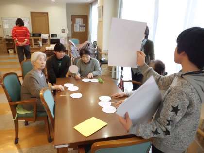 12日(火)に「ケアハウスなごみの里」で利用者さんと遊びを通して交流をしてきました。3つのグループに分かれて,それぞれが企画したゲームを利用者さんと楽しみました。「ゆっくり」「はっきり」言うことを意識して,積極的にお話したり,ゲームを楽しんだりしていました。