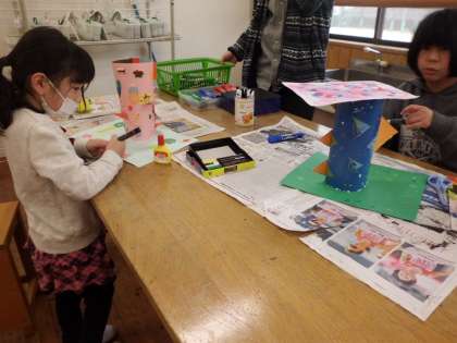 窓をひらくと,楽しそうに魚が泳いだり,動物がたくさん走っていたり,おばけがいたり,お花畑が広がっていたりと,すてきな窓ができあがりました。