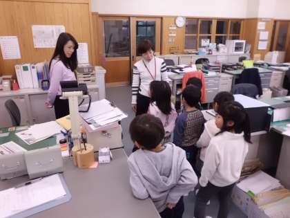 次に,職員室とランチルームに行きました。職員室では「たくさん机がならんでいるね。」「○○先生の名前を覚えたよ。」という声や,ランチルームでは「ランチルームって大きいなあ。」という声が聞こえてきました。金曜日から始まる給食がとても楽しみです。