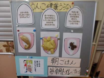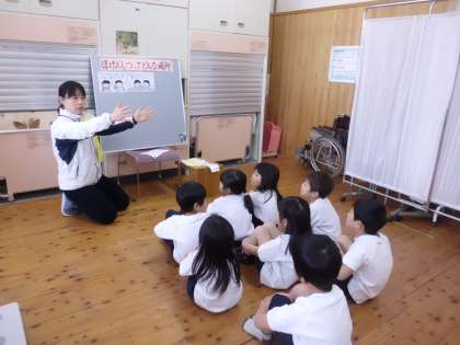 身体測定の前には,養護教諭がお話をする時間があります(今回は,睡眠やトイレの使い方,保健室の使い方など)。
