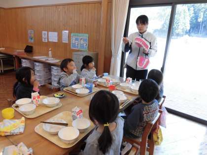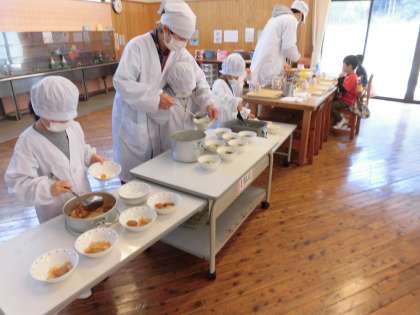 給食当番で配るのはむずかしいところもあったけど,2回目とは思えないほど上手にできました。