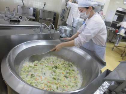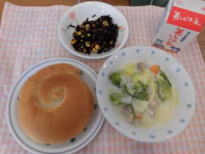 ・きょうはキャベツのクリーム煮にラビットのにんじんが入っていました。(2年生)