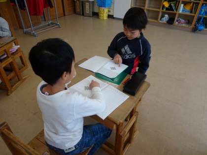 算数の学習では,ブロックの数を図や式を使って求める学習をしました。友だちと考えを交流して,一つの問題でいろいろな考え方があることを知りました。