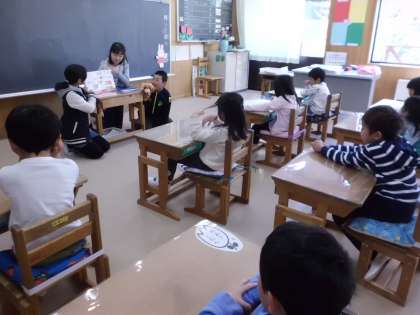 朝の時間に6年生が読み聞かせに来てくれます。朝のとてもほっこりとする時間になっています。6年生,ありがとう!