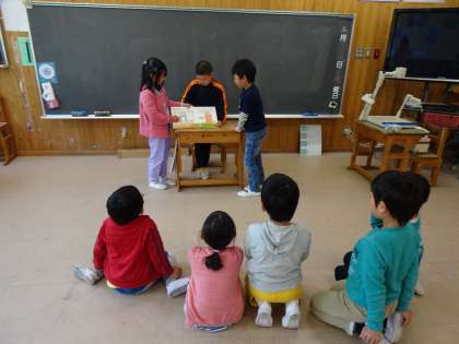 本がかりによる読み聞かせがありました。今回が初めてでしたが,役割分担をして上手に読むことができました。