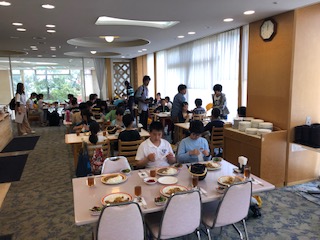 浜辺のホテルで昼食です。午後は人と未来防災センターに行きます。