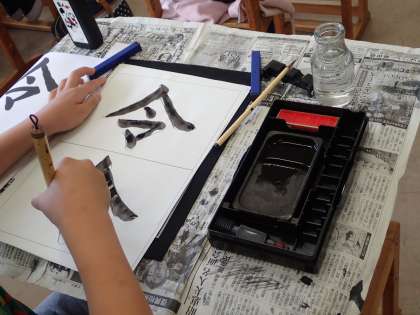 「のぎへん」の3画目より右は,短くなることに気をつけ「和」の字を書きました。少しでもよい字を書こうと,一生懸命がんばっていました。
