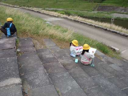 生活科の学習で,学校内の春見つけに続き校区内のたんけんに出かけました。シロツメグサ,カラスノエンドウの種,もみじの種のあかちゃん,ツバメ等の様子を見ることができ,「見つけたよカード」に春の様子をたくさん書くことができました。