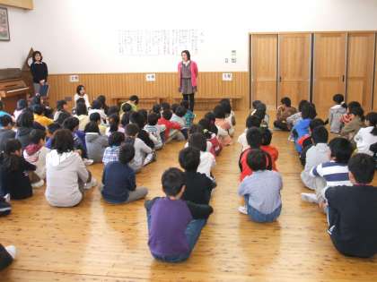 最後は,全校みんなで校歌を歌いました。口を大きく開けてしっかり歌うことができました。今週もいいスタートを切ることができました。