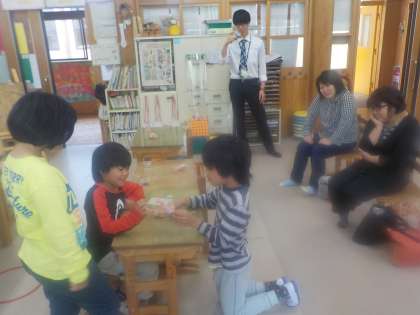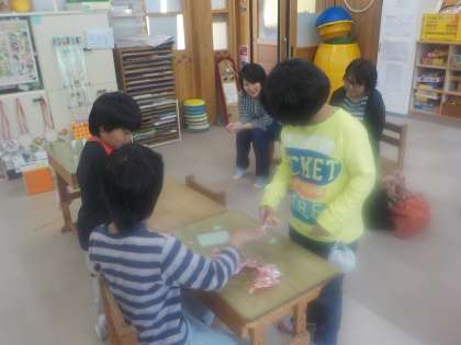 生活単元学習で作ったクッキーを使って「お店屋さん遊び」をしました。クッキーを袋詰めしたり,接客をしたりして楽しみました。言葉かけや代金やお釣りの計算など役割を交代しながら活動を進めることができました。