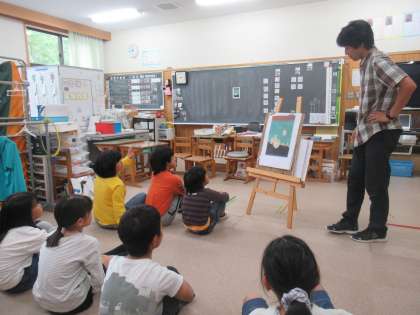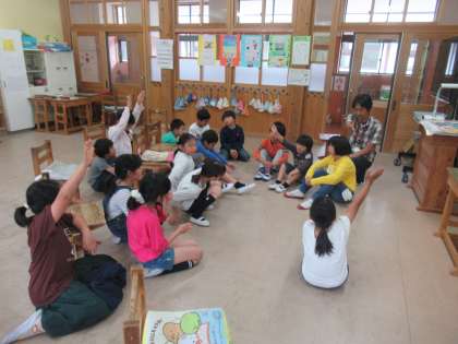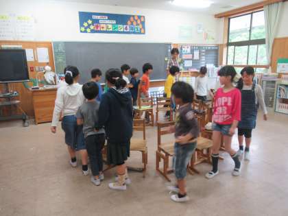 ひかり学級の友達と交流をしました。普段の学習の様子を見せていただいたり,1枚の絵画からどんなことを感じるか,みんなで伝え合ったりしました。後半は4年生が主となって,みんなで椅子取りゲームをして盛り上がりました。これからも,一緒に遊んだり学んだりしながら,仲良く学校生活を送っていきたいと思います。