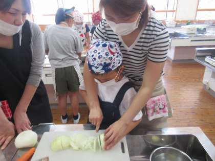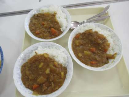 6月1日の親子活動で,4年生はカレー作りに挑戦しました。10月に控えたみさきの家での野外活動に備えて,調理の仕方を練習しました。保護者の方にも手伝ってもらいながら,野菜を切ったり炒めたりしました。子ども達は,出来上がったカレーライスを大盛りに盛り付け,みんなでおいしくいただきました。