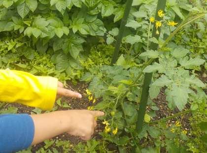 ジャガイモやナス,ミニトマト,ピーマンが大きく育ってきました。