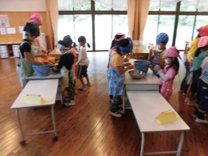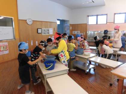 朴葉ごはん給食で使う,えんどう豆のさやむきをしました。