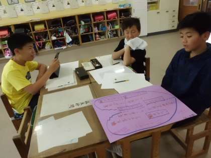 国語科「ようこそ 私たちの町へ」の学習で,「京北☆愛」をテーマに京北のよさを集めつつ,課題について自分たちがどのようなアプローチができるのかをグループに分かれて立案中です。子どもたちが京北のためにどのようなことを立案するのか,どんなパンフレットやポスターなどを制作していくのか楽しみです。