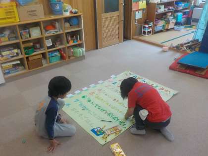 7月3日の育成学級合同運動会にむけて,大型プログラムの作成をしています。
