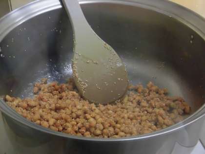 さとう・しょうゆ・ごま・料理酒で作った甘辛いたれに揚げた大豆をからめて完成です!