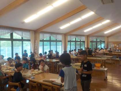 今日の給食の感想を全校に向けてレポートしました。食べたものを自分の言葉で表現することは少し難しそうでしたが,自信をもって発表できました。