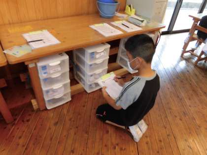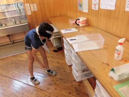 月曜日に比べて,どこのクラスもきれいにたためるようになってきました。