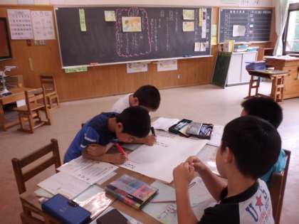 道徳科で「おじいちゃんとの楽しみ」というお話を通して,思いやりについて考えました。お年寄りを大切にするという思いから,楽しい世界を作るために大切なことは何か話し合いました。