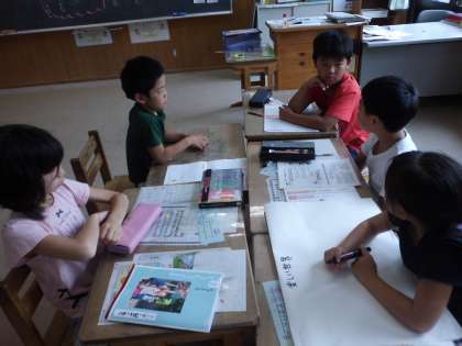 「しあわせ」「へいわ」という言葉を使って議論を進めていたのですが,子どもたちの思いの中には「相手のことを思いやる」という気持ちが込められているのがわかりました。