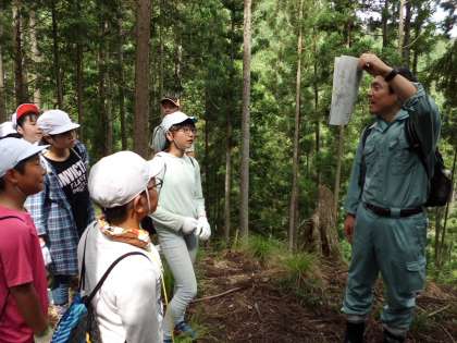 8日(月),明智光秀が築城した“周山城”の址を見に行きました。周山城は山城のため,最初に登山をします。途中途中で休憩を取りながら進んでいきました。頂上では「ここに天守閣があった」ところや「地下室があった」ところなどを教えていただきました。
