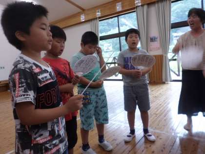 今日は,登校日,1校時は水泳検定,2校時は学活,そして3校時に,丹波音頭の練習をしました。