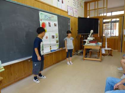 春から取り組んできた「町たんけん」の報告会をしました。それぞれのグループが調べた,お店や施設のことを話した後,学んだこと,気が付いたことを発表しました。