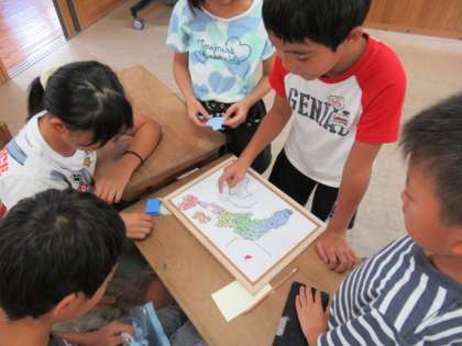 夏休みの宿題で取り組んだ自由研究を交流しました。それぞれの工夫が光る素敵な作品に,「一緒に遊ばせて。」「これはどうやって作ったの。」という子ども達の声が飛び交っていました。