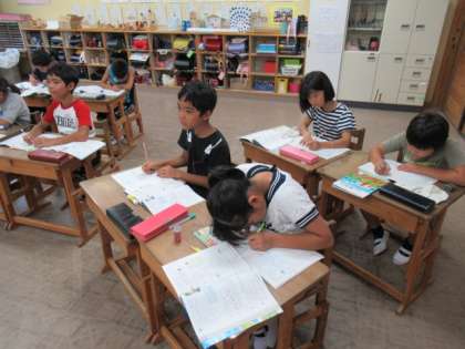 小数のたし算とひき算の復習をしました。小数点の位置に気をつけて数字を読み上げたり,新しく登場した10分の1の位・100分の1の位について学んだりしました。すばやく正確に計算できるよう,みんな集中して頑張っていました。