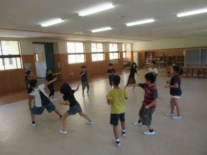 みさきの家キャンプファイヤーでの出し物練習をしました。みんなで話し合い,4年1組でロックソーランを踊ることになりました。リーダーを中心に,みんなでリズムにのって楽しく踊ることができました。